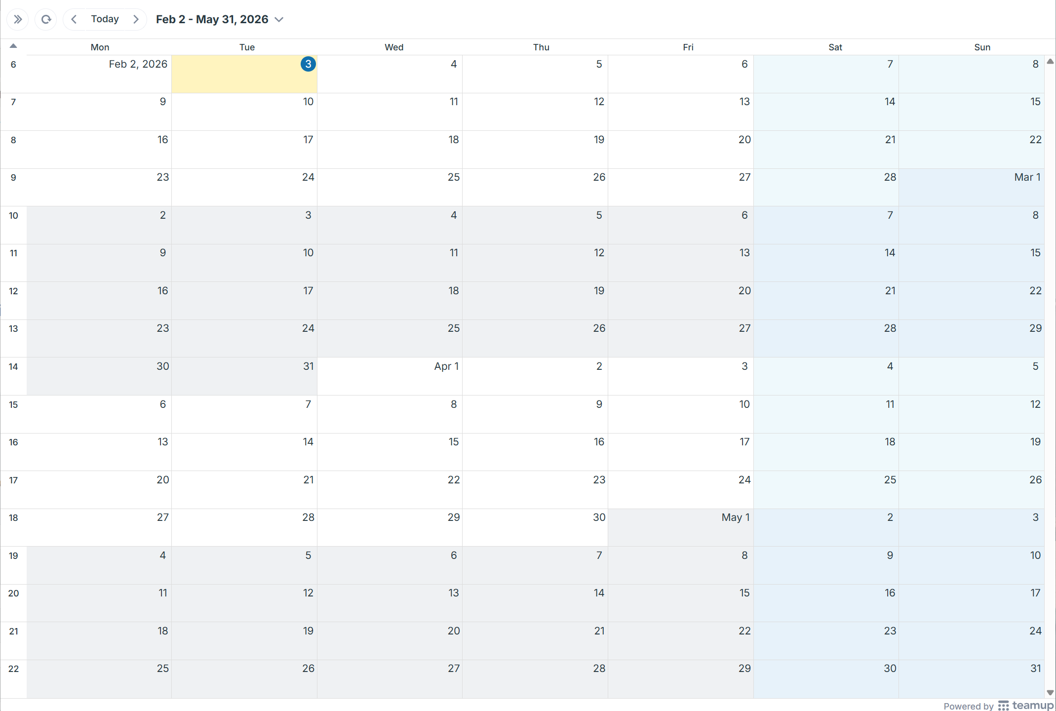 Append the following link parameters to your calendar URL (in the browser address bar). Adjust the dates as needed for the months you want. Here's an example that would print February - May 2026: