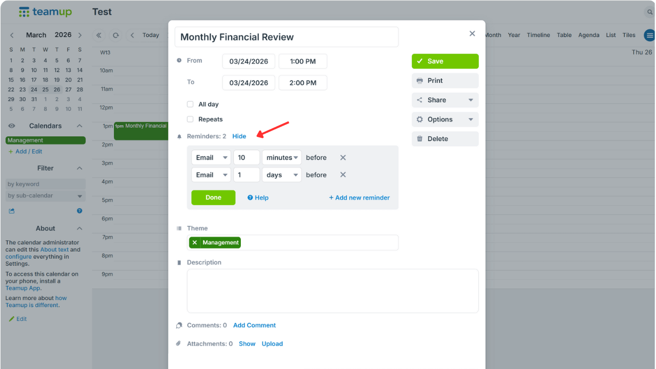 With a user account, you can personalize how Teamup keeps you updated, including: