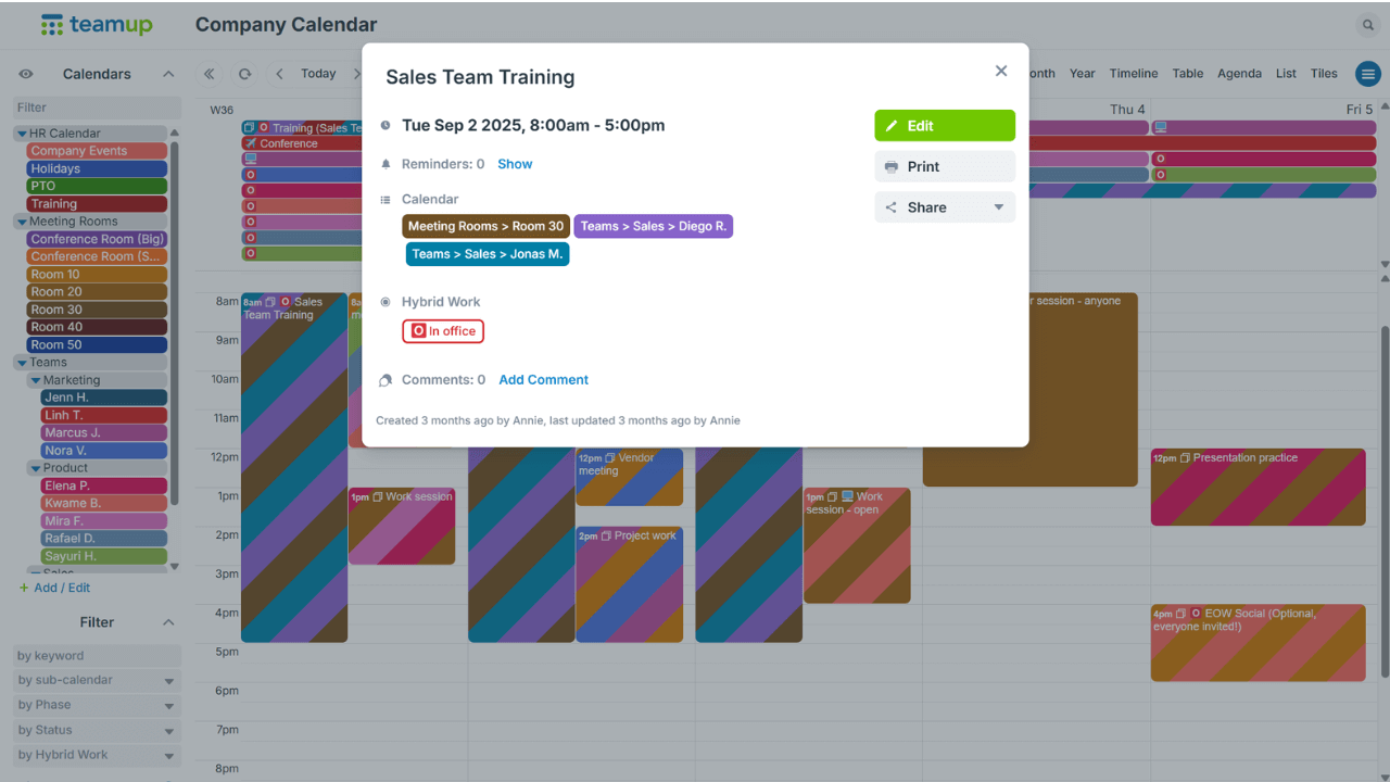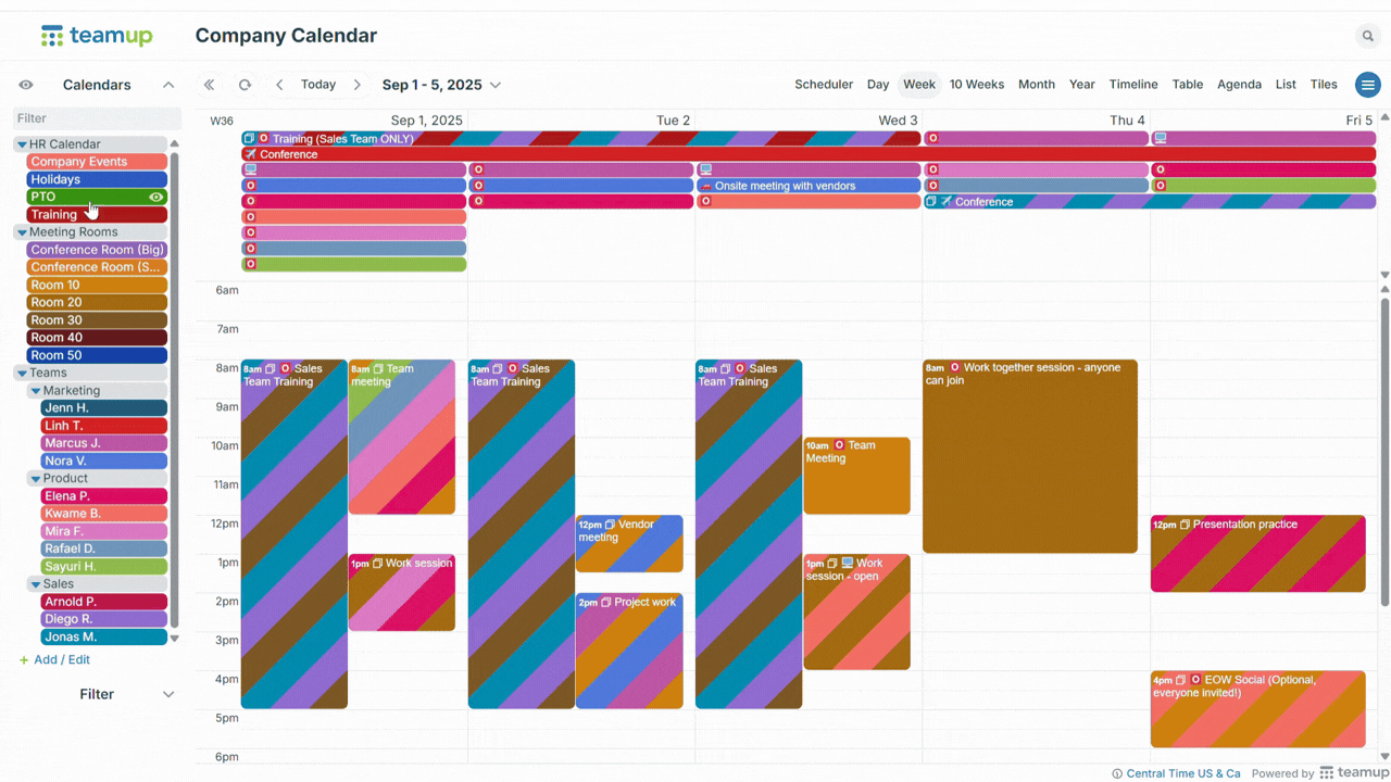 When scheduling involves multiple teams, shared resources, and frequent changes, one big master calendar helps keep schedules organized, accessible, and easy to work with.