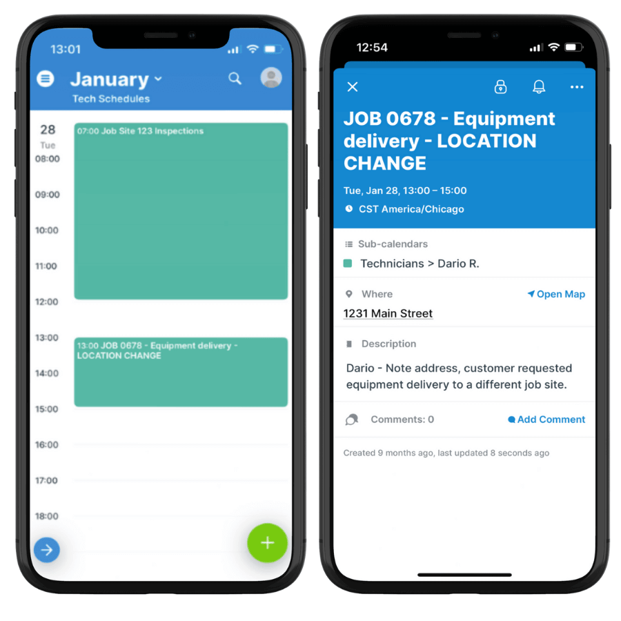 Basic shared calendars can help, but they also create confusion. There aren’t many access options, so it’s tough to customize what each person sees. For techs there’s often either too much information, or not enough.