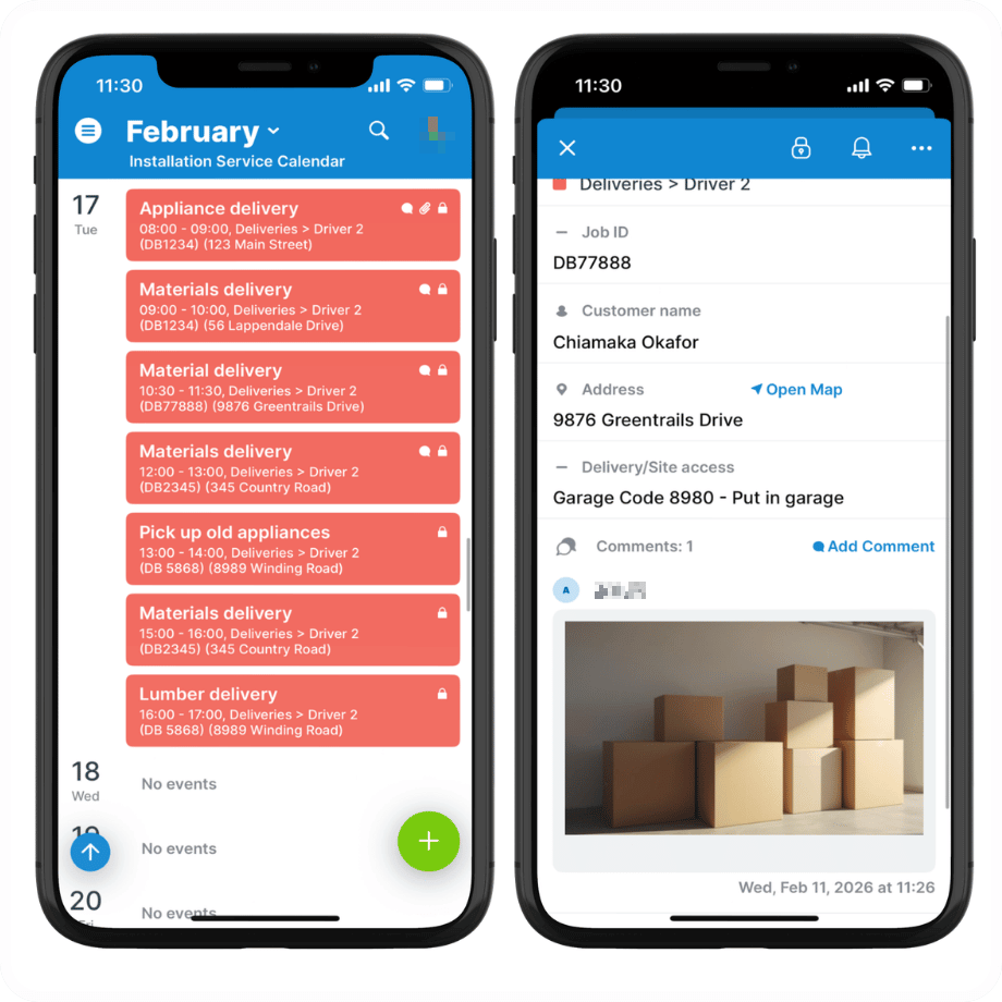 When delivery photos and instructions are part of the calendar, everyone works from the same information. Updates happen in real-time: