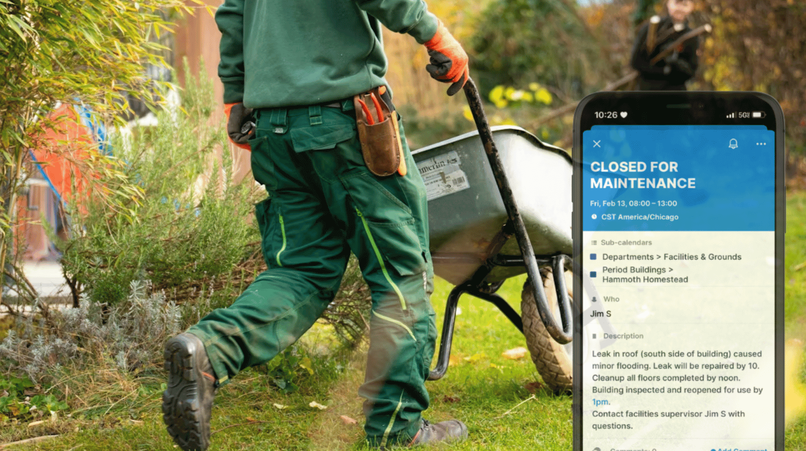 In busy public sites, communication gaps can quickly create problems. A tour arriving at a building that’s closed or a wedding setup scheduled in a space under repair can disrupt both visitors and staff.