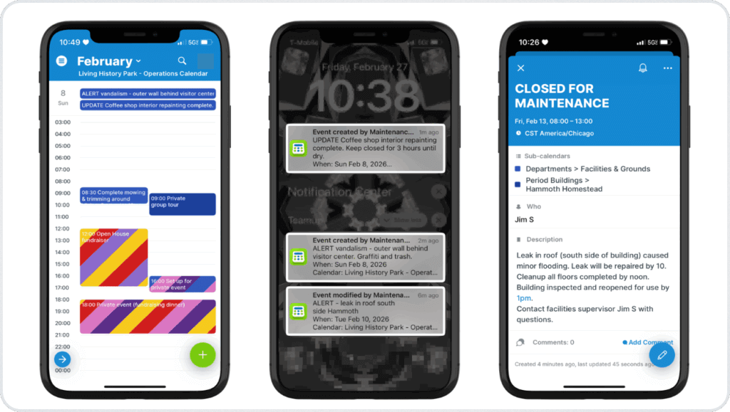 In a busy historical park, buildings and outdoor areas serve many purposes throughout the week. A gazebo might host a wedding one day, a school program the next, and a weekend public tour after that. Maintenance teams rely on a shared calendar to monitor what’s happening across the park and keep all spaces safe, operational, and prepped for special events.