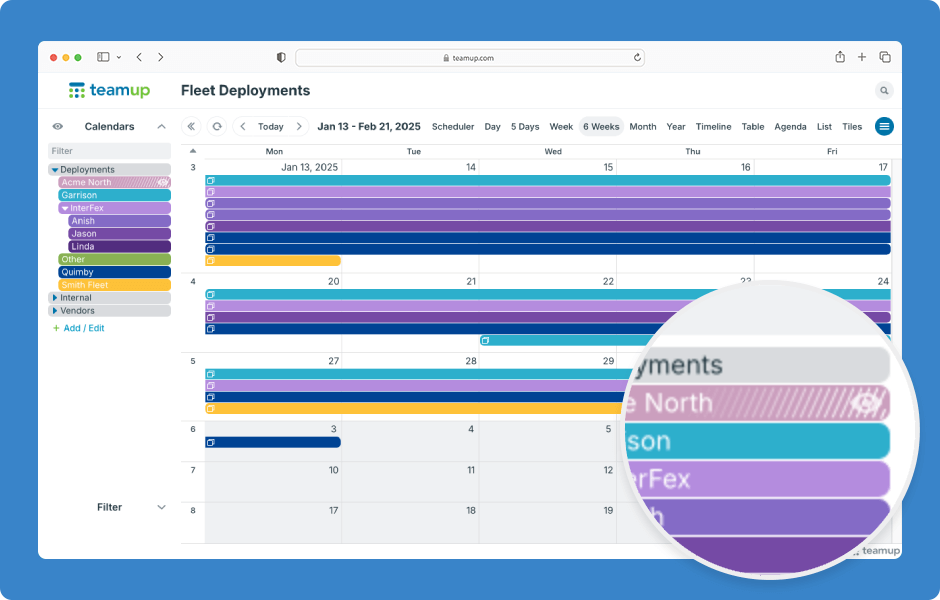 - Click on a sub-calendar title bar to toggle between showing and hiding that sub-calendar.