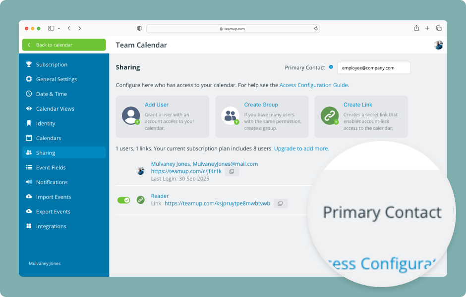 Each calendar has a primary contact email address which is used for several important communication needs. Here’s how to update it.