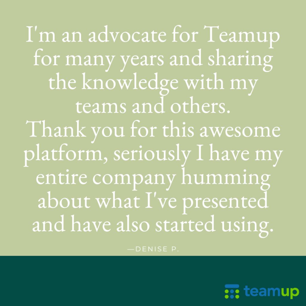 Teamup’s unique Tiles view is now available on our mobile app (iOS, Android). Use it to share a beautifully arranged, visual calendar of events with guests. Whether it’s a weekend retreat, a corporate conference, or a team offsite, guests will enjoy the visual layout. You’ll enjoy the advantage of sharing all the event details in one secure place, with easy updates and real-time syncing for everyone.