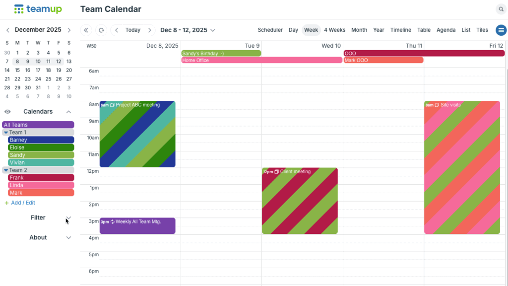 When multiple teams share one workspace, structure is essential. Teamup brings flexible organization that provides structure without adding friction. Explore all the features in a live demo, or create your own calendar today.