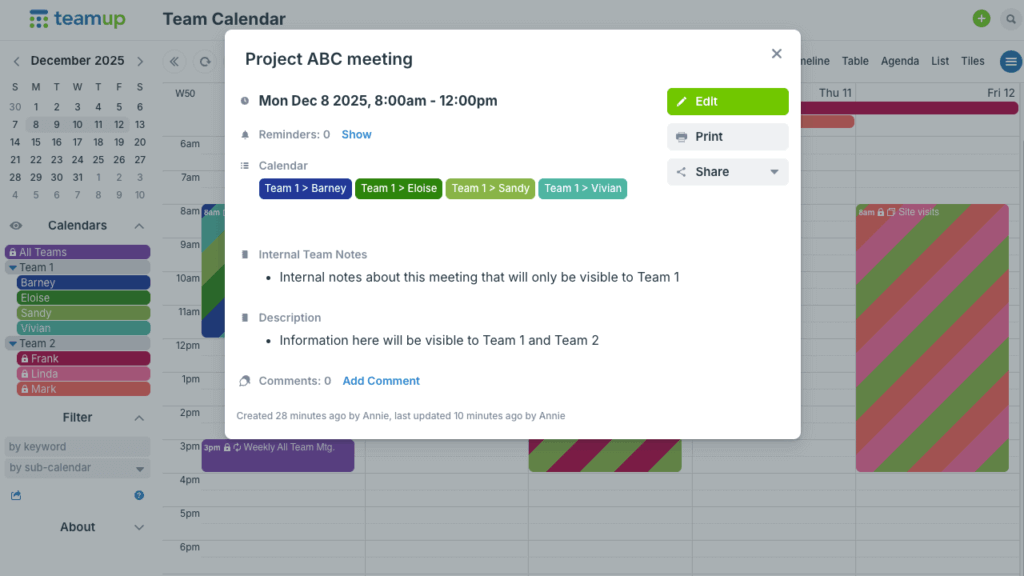 - Keep sensitive notes inside a team while still sharing dates and times with other teams.