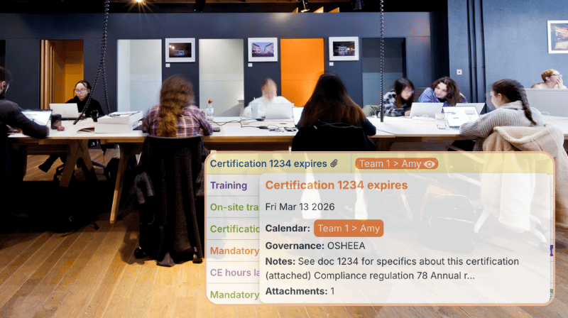 Corporate safety and compliance depend on consistency, visibility, and follow-through. A shared calendar system brings training schedules, renewals, and documentation into a clear, structured workflow.