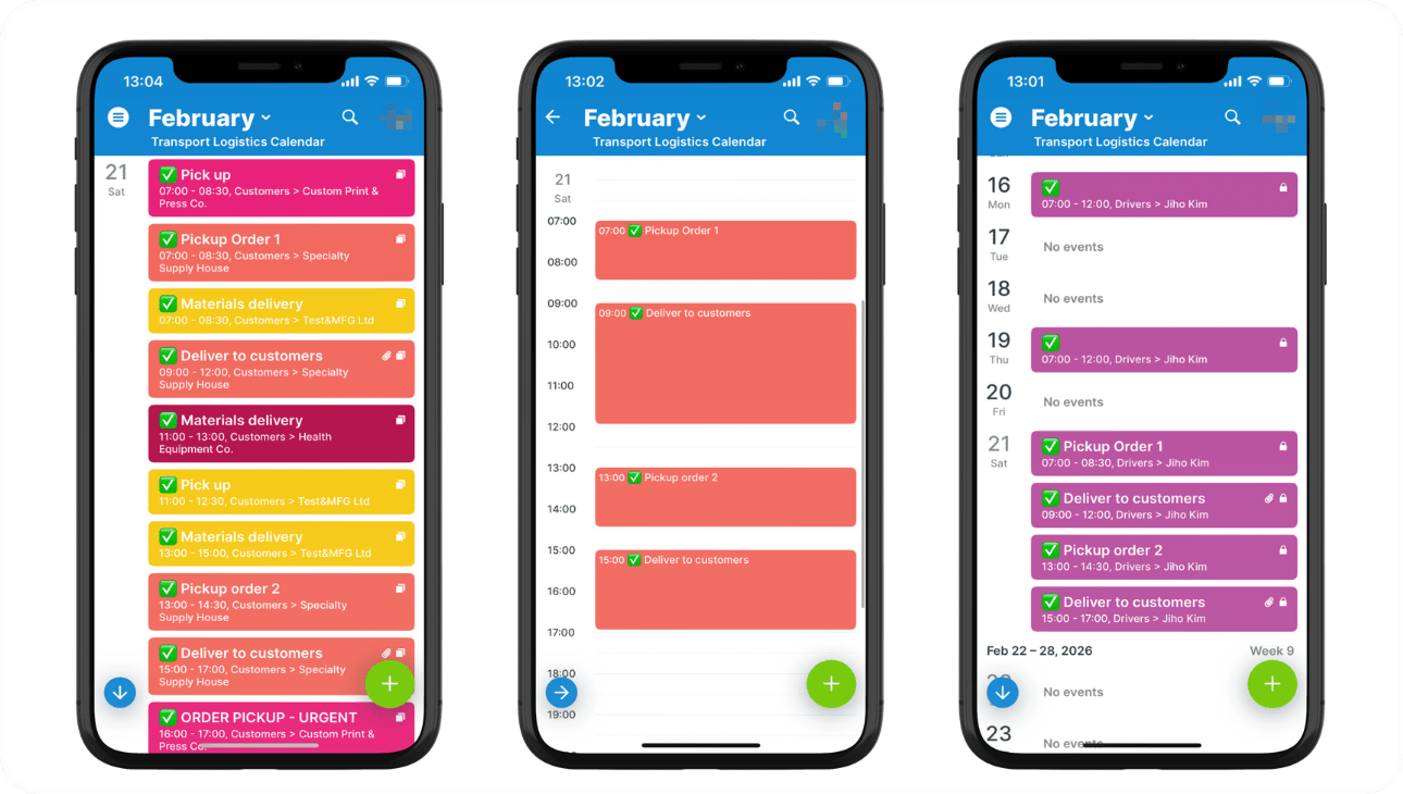 In a shared logistics calendar, the same transport plan can be visible to planners, drivers, and customers, but with different levels of detail and access.