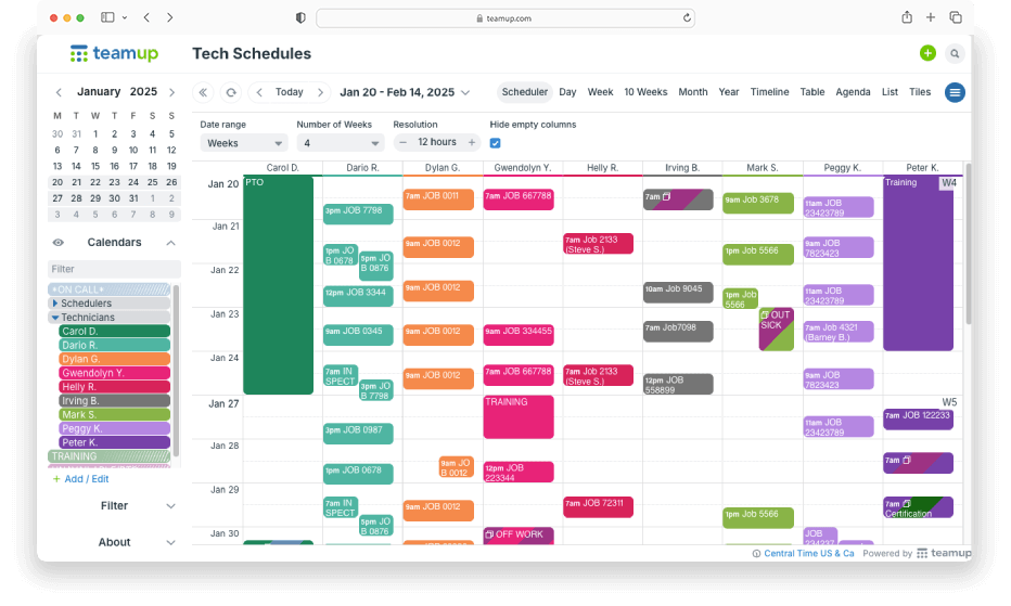 Your calendar should fit the way you think and plan, not the other way around. Teamup’s unique set of planning, workflow, and visual views gives you the flexibility to organize time, people, and resources in a way that truly works for you and your team.