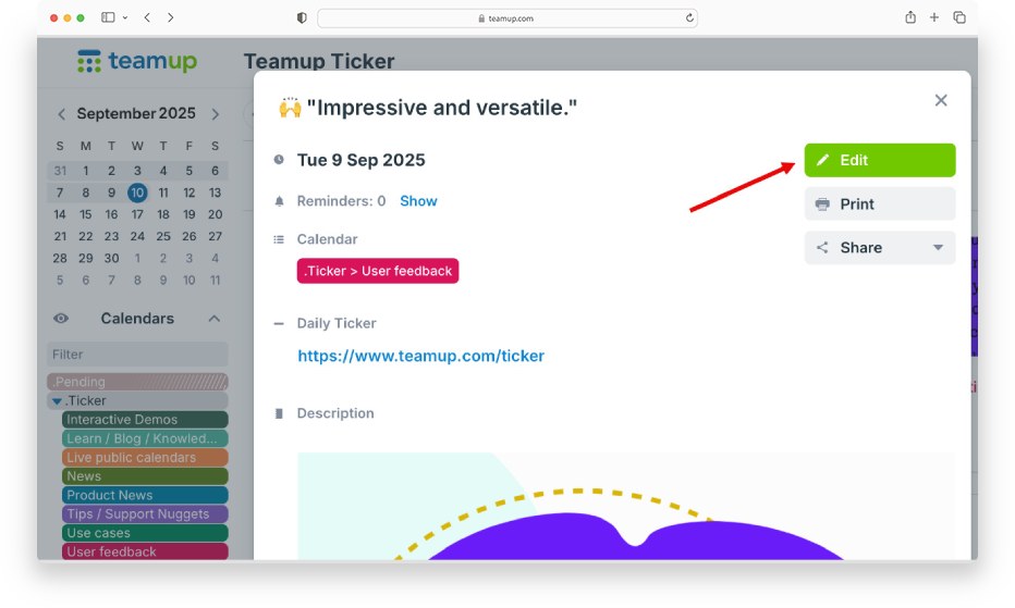 Now, events first open in the read-only event viewer. Users can click the Edit button to switch to the event editor and make changes to the event.