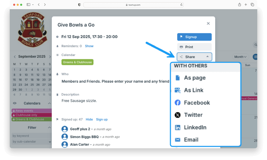 A shared online calendar brings every event, signup, and update into one space. It’s a simple but significant change. Having it all in one place lowers the administrative burden for coordinating fixtures and social events. And everyone knows where to go for event info.