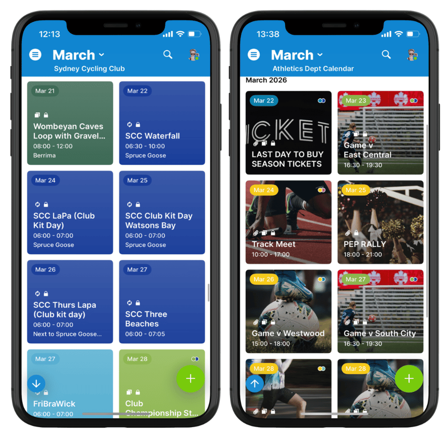 Click to enlarge: Sydney Cycling Club’s calendar on the Teamup app. If events have images, they’re highlighted in Tiles view.
