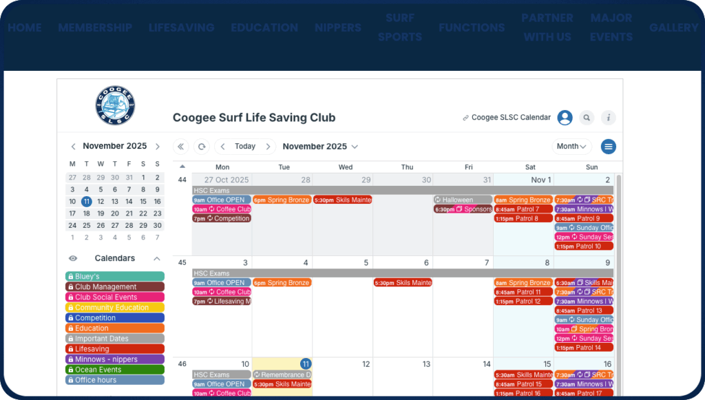 - Volunteer surf clubs: Schedule patrols, training, and community events.
