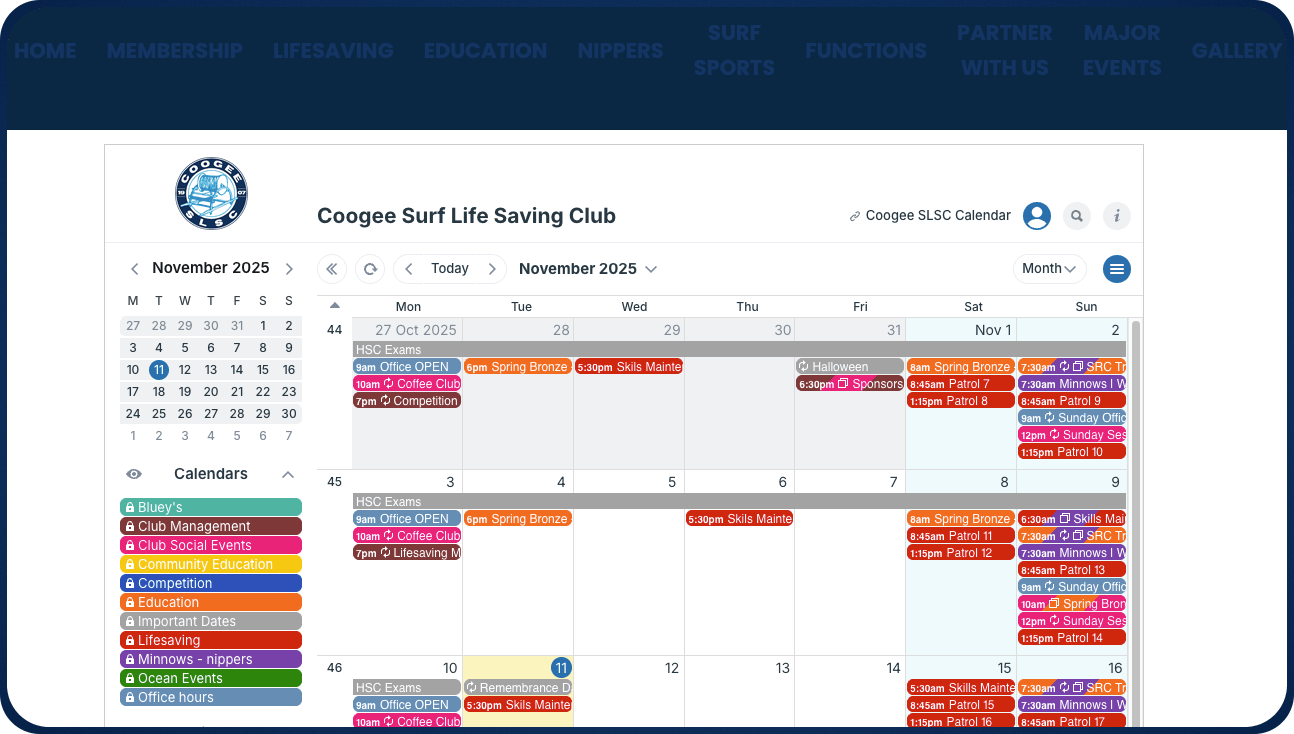 Click to enlarge: A volunteer-run surf club provides easy schedule access for parents and volunteers with an embedded club calendar.