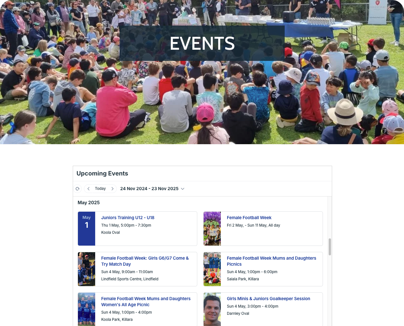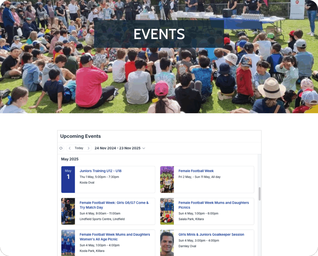 This structure solves the problems caused by multiple scattered systems. Coaches and coordinators can add and update everything in one place, without needing to share changes on multiple platforms. Parents and players only have to check one calendar. Those with multiple children can filter by team, age group, or calendar category. Volunteers always know what’s happening, and new families know exactly where to find practice times and game info. Everyone from coaches, coordinators, and volunteers to parents, players, and spectators can check one dependable place for accurate schedules.