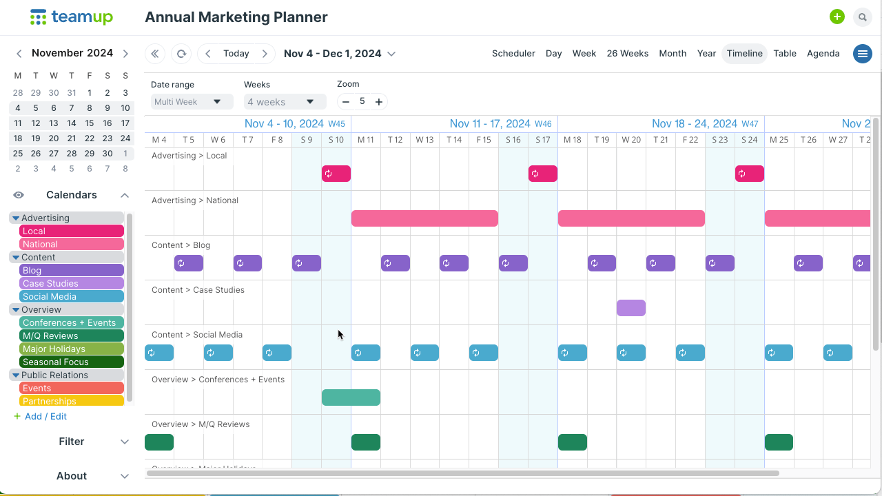- Overview of the entire year’s marketing activities for alignment with overall business goals.